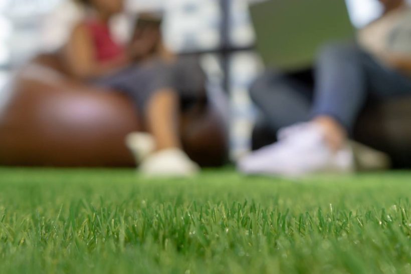 Synthetic grass is extremely low-maintenance. There’s no mowing, fertilising, or watering required. You may need to occasionally brush the surface to lift the blades and hose it down to remove dust or debris. For households with pets, a quick rinse and sanitiser may be needed to keep odours at bay.